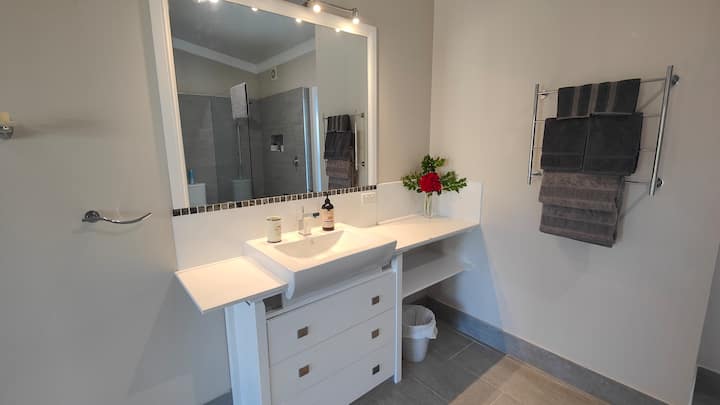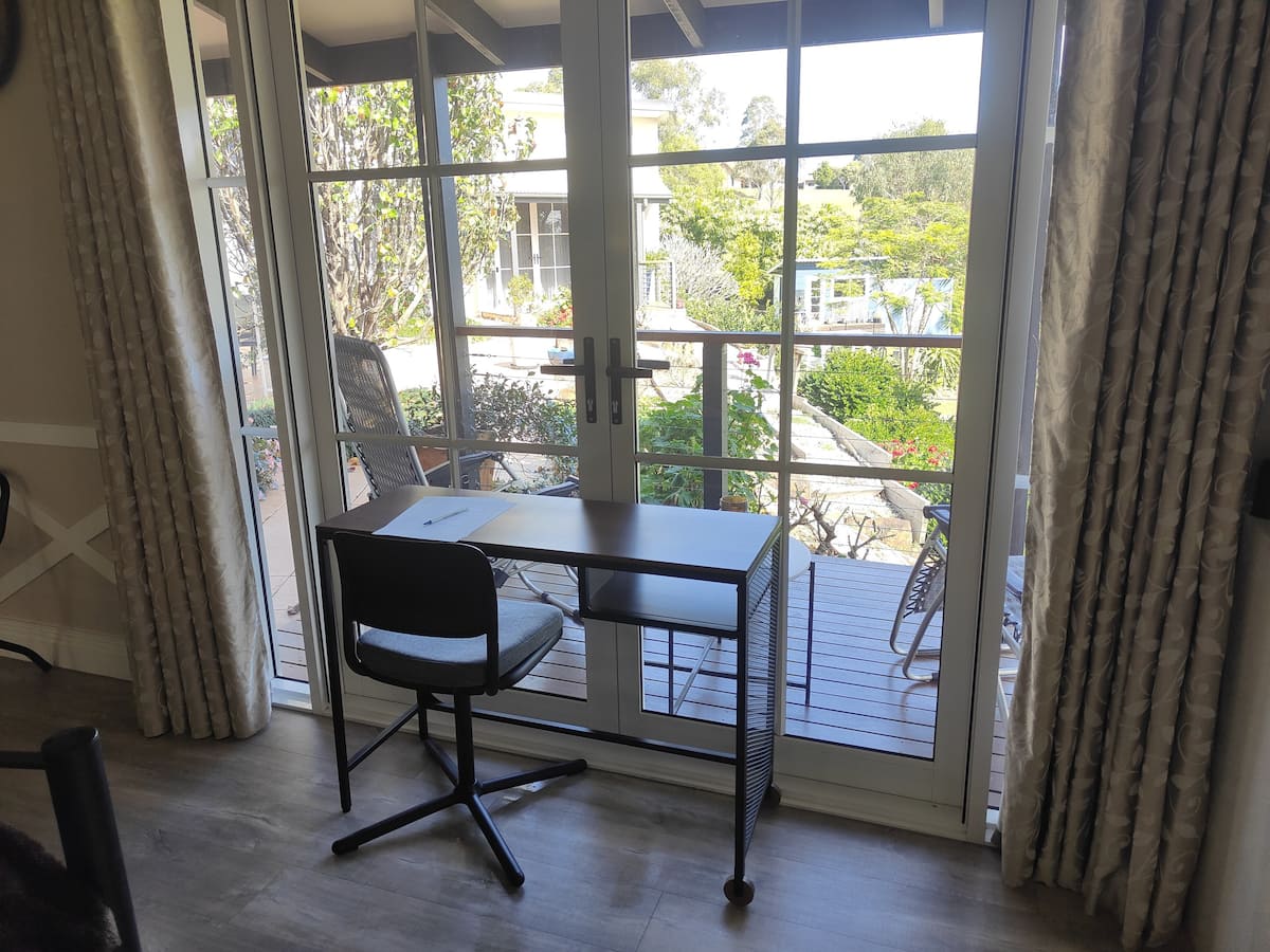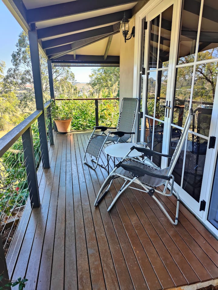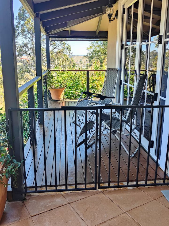 This spacious guest suite with it’s own private full bathroom separated from the main house by a garage is positioned overlooking Hidden Valley Estate where you’ll find kangaroos roaming and lounging about. With it’s own separate entrance you will have total privacy. Fridge, microwave, toaster and kettle are provided as well as a shared BBQ. Wake up in the morning and enjoy a cup of coffee out on your deck or sit in the evening with a glass of wine and watch the sunset by the fire pit.